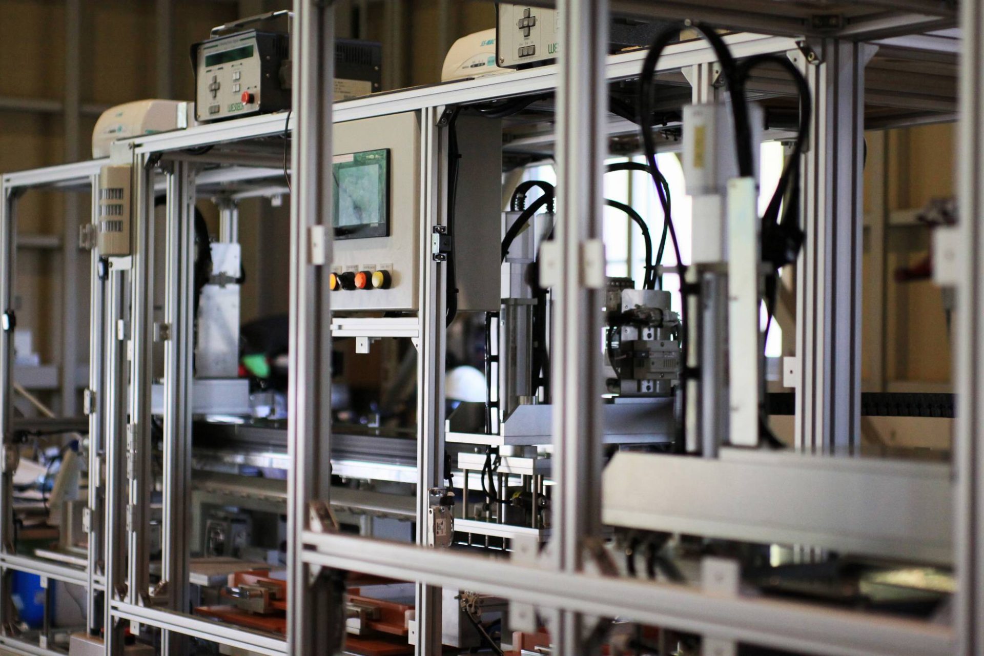 設計からのフローをもとに、組み立ての工程へと移ります。 組立作業は細心の注意を払いながら丁寧に組み立てます。 安全で使いやすく、高い生産性と高稼働を達成するために、 テストを繰り返しながら、動作確認やワーク調整も責任をもって行います。